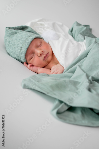 Newborn baby sleeping. Happy family kid dream concept. Cute lifestyle newborn baby sleeping