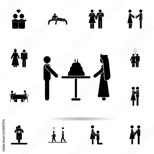 Newlyweds and wedding cake icon. Universal set of people in love for website design and development, app development