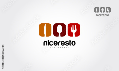 Nice Resto Vector Template. Logo Food word sign logo icon design template elements with spoon, knife and fork. Vector logo illustration