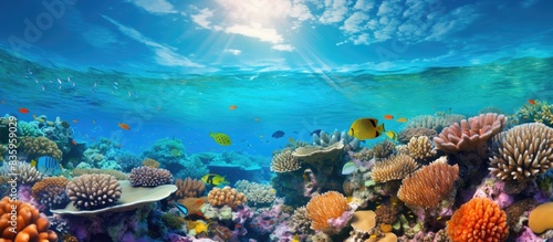 nice yellow colorful coral reef in the red sea. Creative banner. Copyspace image