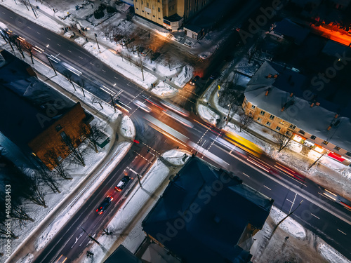 aerial, night, roundabout, winter, car, transport, snow-covered, building, urban, transportation, traffic, car, circle, street, round, road, junction, intersection, truck, up high, bus, architecture, drive, drone, vehicle, city, crossroad, city landscape, view, delivery, tied-up, travel, technology, speed, road, modern, light, landscape, beautiful, center, illuminated, diagonal, house, driving, fast, design, highway, europa, long exposure, snow