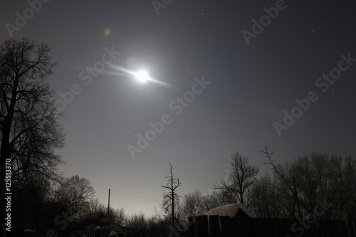 Night and small village in winter snow