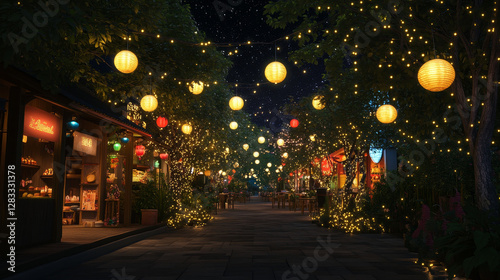vector, house, tree, illustration, background, sky, travel, city, architecture, light, road, district, tradition, star, chinatown, street, ethnic, air, flower petals, beijing, korea, asian, cartoon, style, night, oriental, building, promenade, eatery, china, pavilion, red, traditional, shop, chinese, sakura, city landscape, old, flying, asia, ancient, cherry, town, culture, illumination, palace, lantern, pagoda, blossom