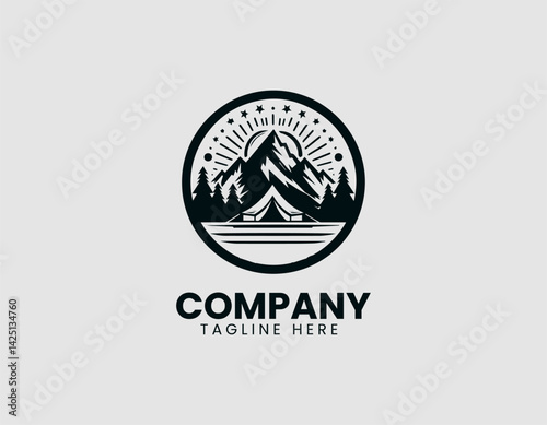 tent, mountain, vector, logotype, design, moonlit, adventure, peaceful, camp, landscape, view, silhouette, camping, night, mountain, star, moon, travel, nature, scenic, tranquil, sky, dark, light, illustration, art, graphic design, brand, identity, symbol, icon, cardboard box, product, decoration, t-shirt, merchandise, apparel
