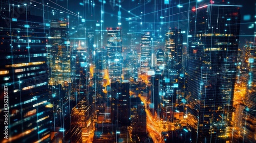 city, skyline, night, datum, network, technology, digital, urban, connection, modern, future, abstract, architecture, building, light, street, communication, information, connectivity, global, innovation, business, commerce, globalisation, urbanisation, infrastructure, development, progress, growth, city landscape, connection