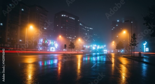 city, night, street, light, wet, rain, neon, urban, city landscape, fog, building, traffic, illuminated, architecture, modern, travel, dark, vibrant, long exposure, street light, asphalt, road, abstract, evening, scenic, artistic, colourful, atmosphere, moody, commercial, design, exterior, downtown, bright, glow, illumination