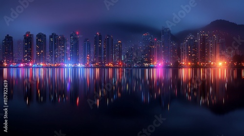 city, night, skyline, city landscape, building, skyscraper, light, water, lake, river, urban, modern, architecture, dark, illuminated, vibrant, colourful, glow, scene, view, panorama, landscape, twilight, evening, dusk, horizon, background, metropolis, tower, structure, design, abstract, image, photo, picture, illustration, graphic, art, aesthetic, mood, atmosphere, ambient, beauty, fantastic, dreamy, magical, serene, tranquil