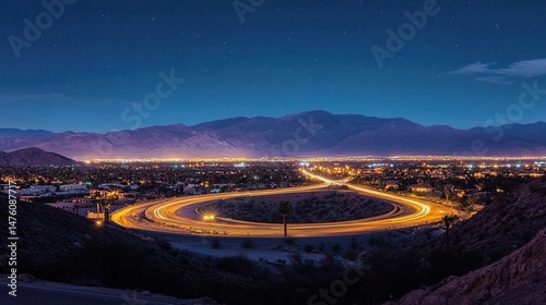 night, city landscape, city, road, highway, winding, curve, loop, star, sky, mountain, hill, desert, light, traffic, urban, landscape, scenery, nocturnal, twilight, evening, dusk, dark, illumination, glow, vibrant, colours, beautiful, scenic, nature, travel, journey, adventure, exploration, peaceful, serene, calm, tranquil, relaxing, majestic, impressive, photo, image