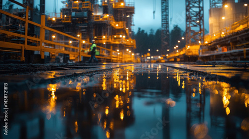 construction, night, floodlight, reflective, steel, beam, safety, men at work, equipment, illumination, urban, architecture, labor, site, industrial, teamwork, blueprint, machinery, scaffolding, city landscape, concrete, progress, technology, engineering, environment, shadow, manual, project, landscape, precision, development, dynamic, heavy duty, labourer, tool, infrastructure, glowing, contrast, vibrant, planning, structure, activity, hard hat, maintenance, survey, collaboration, innovation, visibility
