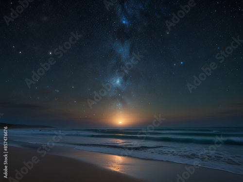beach, sea, sand, water, ocean, nature, sky, sun, coast, snow, wave, summer, landscape, wave, shore, winter, blue, footprint, sunset, footprint, coastline, sunlight, lake, star, moon, tranquil, serene, milky way, calm, generative, ai