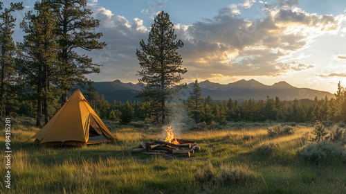 horizontal, photo, color image, camping, outdoors, no people, tent, adventure, grass, avocation, nature, sky, travel, cloudscape, discovery, exploration, hiking, calmness, vacation, vietnam, day, mountain, summer, tree, illuminated, us, colorado, copy space, night, backpacker, blue, lake, mountain chain, orange color