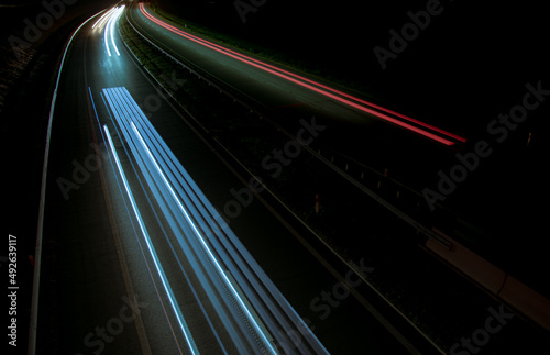 Night road lights. Lights of moving cars at night. long exposure red, blue, green, orange.