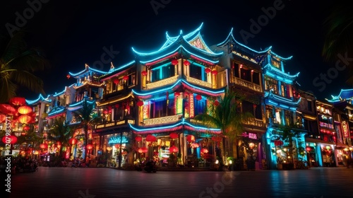lantern, night photography, long exposure, light, building, shop, store, neon, illuminated, town, festive, magical, enchanting, impressive, glow, tour tourism, vibrant, city, exotic, intricate, tradition, aesthetic, holiday, asian, urban, street, destination, colourful, stunning, travel, atmosphere, design, bright, culture, beauty, detailed, night, vacation, blue, pattern, crowd, palm tree, person, red, celebration, darkness, plant, style, mood