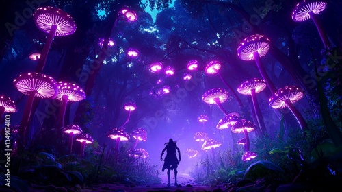 night, scene, dense, forest, glow, mushroom, light, path, headless, horseman, ghostly, chill, gloaming, folklore, aura, magical, twilight, creature, dusky, enchant, shadowy, misty, gloomy, purple, realism, spine, mythical, shadow, phantom, silhouette, legend, figure, skittish, specter, spectral, fantasy, aethereal, phantasm, nebulous