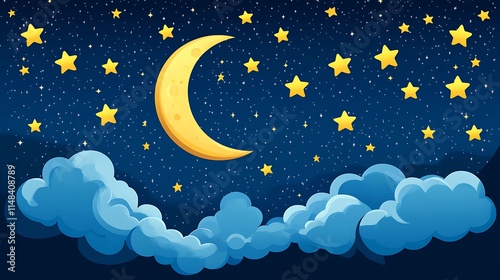 night, moon, star, sky, cloud, celestial, space, galaxy, dark, universe, starlight, crescent, midnight, fantasy, dreamy, cosmic, twilight, heaven, aethereal, magical, astronomy, glowing, background, illustration, cartoon, pattern, texture, design, art, graphic, wallpaper, sparkle, shiny, serene, peaceful, quiet, calm, tranquil, mystic, beauty, imagination, lunar, evening, atmosphere, scene, nature