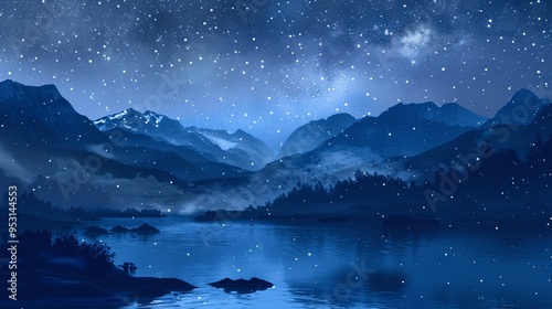 Night Sky with Mountains and Lake