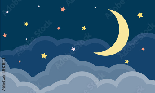 moon, night, sky, vector, star, illustration, star, cartoon, christmas, space, baby, cloud, art, sleep, design, nature, landscape, tree, dark, card, crescent, dream, cloud, pattern, fantasy