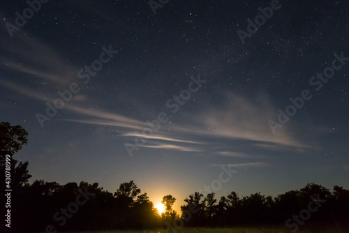 moon, satellite, light, glow, raising, forest, tree, grove, silhouette, star, starry, sky, astrophotography, atmosphere, flocked, glistering, infinite, shimmer, shine, starlight, stellar, tiny, twinkle, night, background, dark, landscape, scene, panoramic, scenic, scenery, nature, environment, beautiful, magnificent, marvellously, beauty