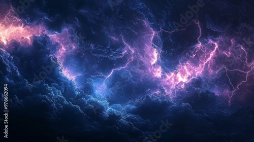 Night storm with electric energy charging the sky, powerful lightning bolts creating a dramatic atmosphere