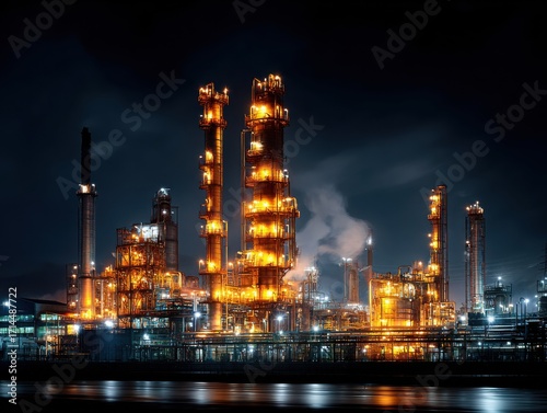 industrial, night, factory, plant, production, illuminated, industry, city landscape, energy, technology, architecture, construction, skyline, refinery, oil, chemical, complex, exterior, modern, infrastructure, urban, light, smoke, environment, pollution, steel, building, processing, gas, power, fuel, crude oil, landscape, development, site, storage, equipment, structure, gigabit