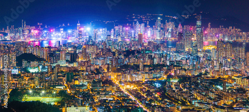 Nightscape of the Victoria Harbour and Kowloon area of Hong Kong