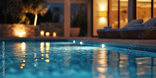 Nighttime Serenity: Illuminated Poolside Relaxation at a Luxurious Villa