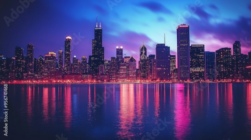 Nighttime Skyline Reflection in Chicago.