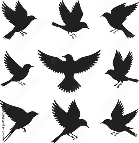 bird, bird, silhouette, silhouette, black, black-and-white, flying, flight, avian, wing, feather, nature, wildlife, animal, animal, collection, set, group, design element, graphic, vector, logotype, symbol, icon, illustration, pattern, background, simple, minimalist, elegant, monochrome, artwork, art, image, digital, printable, template, clip art, eagle, wing, dove, pigeon, fly, hawk, feather, wild