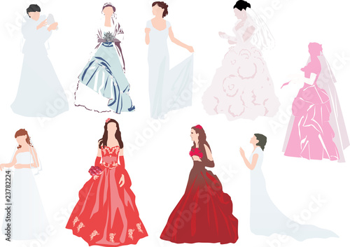 bride, wedding, dress, veil, vector, woman, bouquet, elegance, flower, female, beauty, beautiful, love, illustration, white, married, silhouette, evening, fashion, gown, ceremony, wife, femininity, celebration, style, romance, luxury, pink, clothing, traditional, sexy, pattern, design, hair, bridal, young, woman, model, set, group, collection