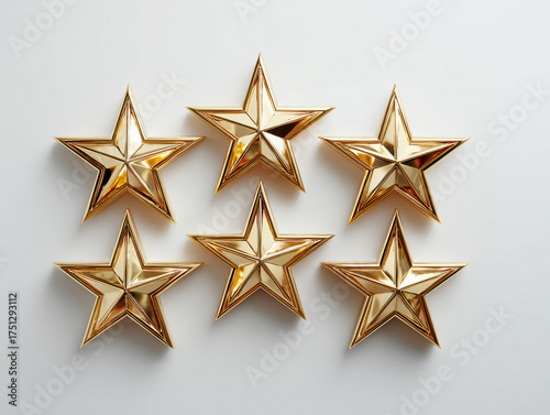 Nine gold stars in diagonal line, slightly overlapping, intricate cut-out patterns, light grey background, soft shadows, minimalist style, clean lines, geometric shapes - AI-Generated