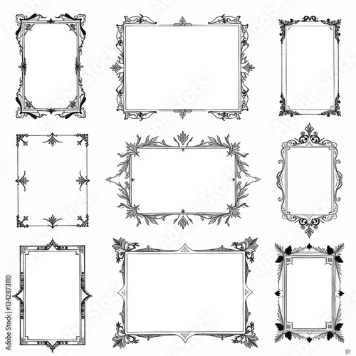 Nine Ornate Black and White Picture Frames