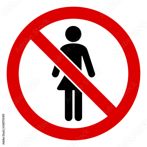 flat, icon, vector, woman, person, girl, female, privies, lady, human, sex, client, user, account, forbidden, no, stop, prohibited, cancel, negative, isolated, rule, restrict, restriction, absence, design element, glyphs, symbol, none, prohibition, pictograph, pictogram, risk, remove, disallow, signs, ban, forbid, attention, restricted, closed, not allowed, wrong, illegal