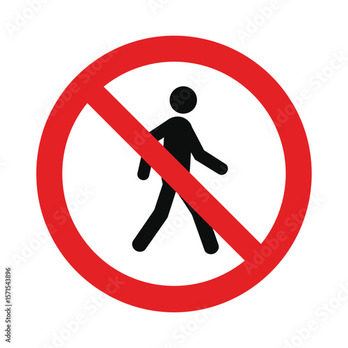 "No Pedestrian Sign Icon – Red Circle Walk Prohibition Symbol for Safety and Traffic Warnings"