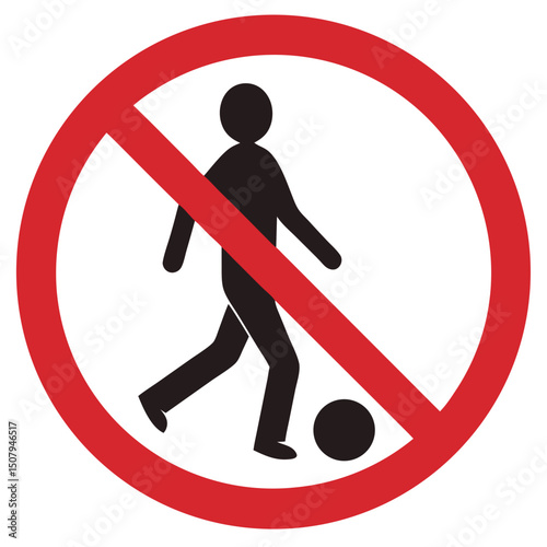 No sports activities sign with silhouette of a person walking near a ball in prohibition circle