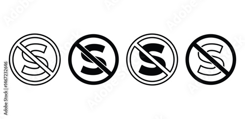 No Stopping Icons Circular Prohibition Symbols Black and White Color Vector Design Illustration