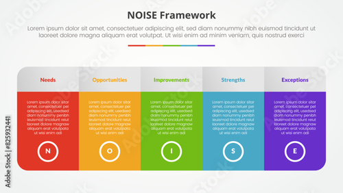 NOISE analysis model infographic concept for slide presentation with big table with gradient color and round shape with 5 point list with flat style