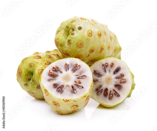 Noni fruits on white background