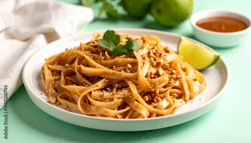 noodles tangled with crushed peanuts and lime