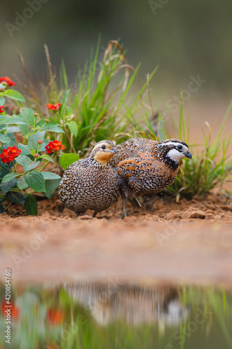 eating, female, grass, habitat, male, duck pond, 2, wildflower
