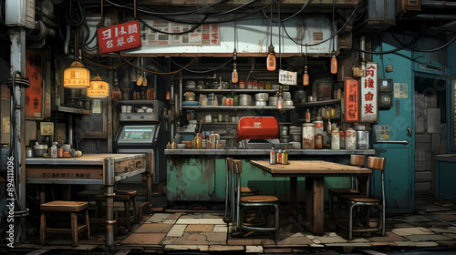 rustic, china, old, inviting, bottle, dinner, stool, food, table, shelf, cosy, chair, eatery, grunge, drink, digital artwork, scene, weathered, counter, atmosphere, retro, hot drink, artwork, vintage, can, stall, tea, shadow, light, illustration, asian cuisine, warm, jar, worn, authentic, colours, detail, traditional, cafes, background, imagery, hong kong