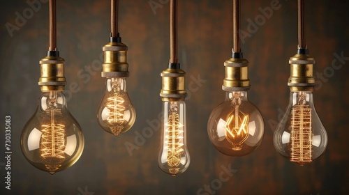 Nostalgic glow: Realistic set of retro light bulbs with vintage design and copper details