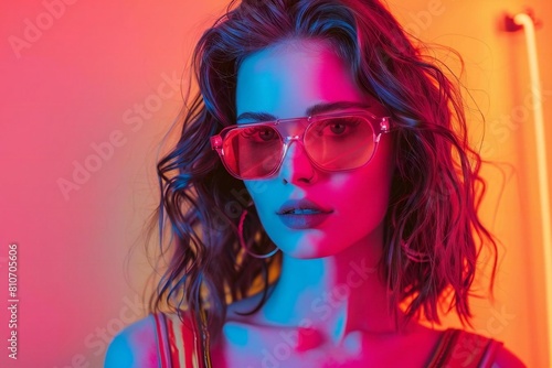 Nostalgic Neon: Young Caucasian Woman with Retro Audio Cassette