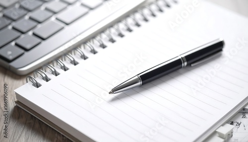 notebook, pen, keyboard, workspace, office, writing, planning, idea, paper, spiral, study, work, business, productivity, organisation, creativity, inspiration, daily, weekly, monthly, agenda, meeting, appointment, schedule, task, project, document, report, information, communication, technology, digital