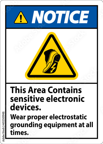 Notice Sign This Area Contains Sensitive Electronic Devices, Wear Proper Electrostatic Grounding Equipment At All Times