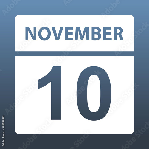 November 10. White calendar on a colored background. Day on the calendar. Tenth of november. Vector illustration.