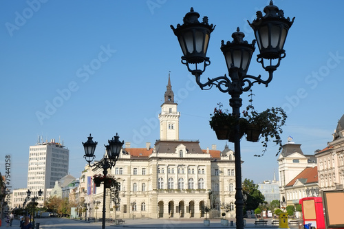 square, downtown, downtown, town center, city hall, city hall, tower, bell tower, lamp, street, silhouette, sky, blue, clear, historical building, historical, history, past, ancient, antique, old, palace, luxury home, architecture, architectural, building, style, art nouveau, liberty, hungarian, neoclassic, landmark, famous, travel, vacation, tour tourism, novi sad, vojvodina, serbian, serbia, europa, eastern