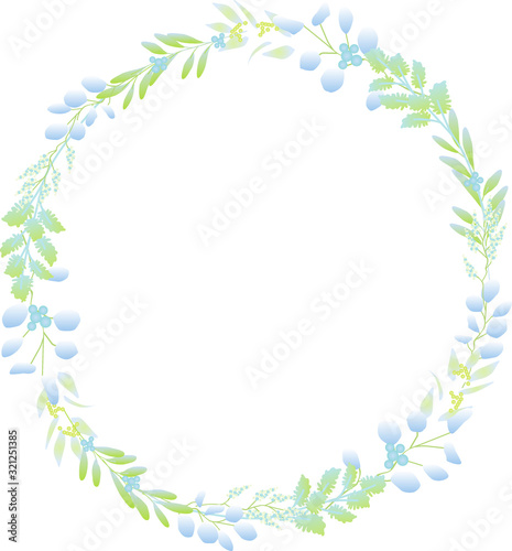 green, plant, leaf, leaf, wedding, birthday, birthday party, spring, summer, pretty, elegant, pretty, sweet, refreshing, gentle, pastel colour, sky blue, light blue, chartreuse, light green, frame, frame, leasing, circle, yen, circle, background, card, greeting card, invitation, decoration, decoration, illustration, copy space, vector