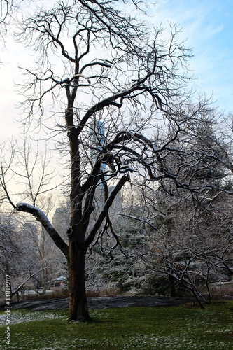 nature, forest, tree, winter, heaven, landscape, central park, wood, branch, season, park, leaf, autumn, snow, blue, white, cold, black, bare, silhouette, aged