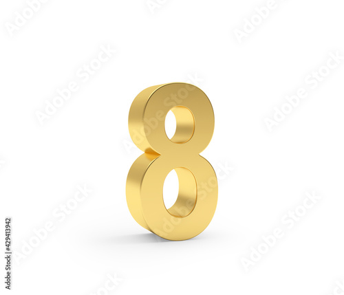 8, number, gold, numeral, 8, three-dimensional, illustration, digit, alphabet, gold, figure, metal, letter, text, mathematical, finance, business, design, banking, calculation, signs, economy, school, white, background, isolated, precious, jewellery, object, single, symbol