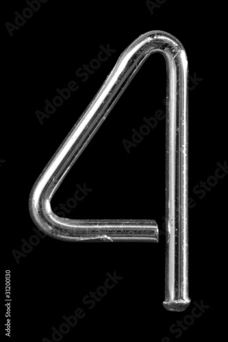 4, fourth, 4, wire, digit, metallic, number, numeral, aluminium, bright, clip art, design, element, grey, metal, object, shiny, silver, steel, symbol, white, black, figure